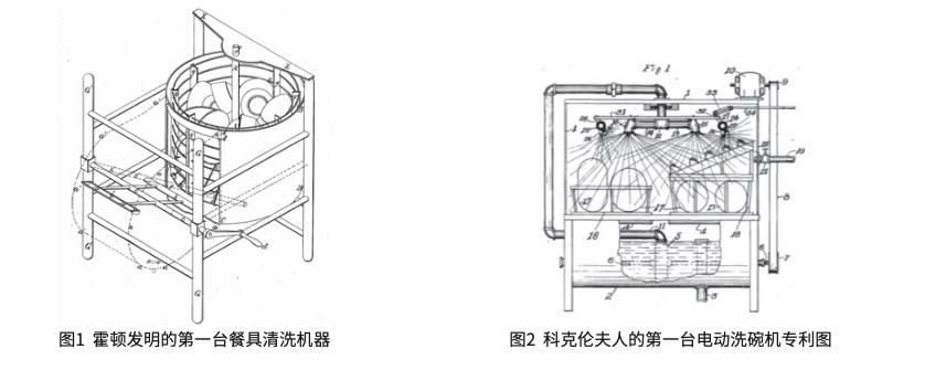 1917 年,美国第一次出现电动洗碗机,是在科克伦夫人的专利中(图2),该发明使用电动机来操作离心机水泵,使用旋转喷臂将水直接喷在餐具上,同时也奠定了后续电动洗碗机的雏形,成为当今遍采用的解决方案,同时还增加了漂洗阶段。但对这一点而言,行业中至今仍然有不同的声音,认为第一台电动洗碗机是 1913 年由沃克兄弟公司 (Walker Brothers)推出的。