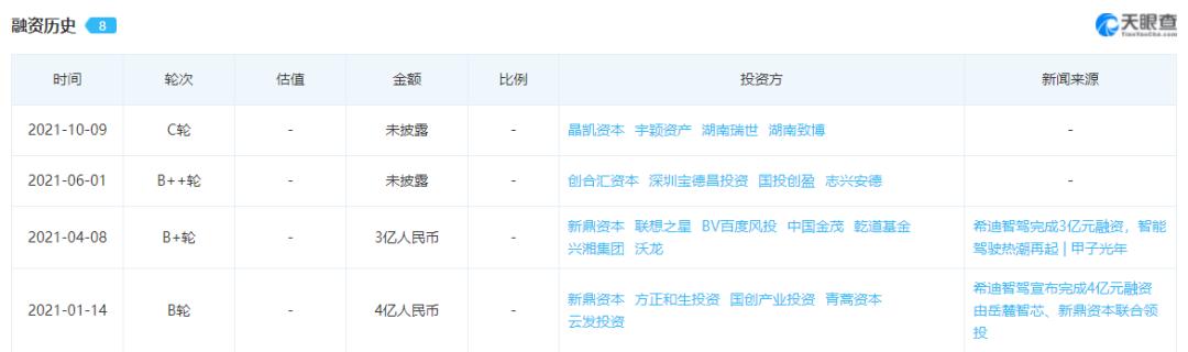 天眼查APP显示,仅去年一年,希迪智驾就获得了4轮融资;蘑菇车联则在去年9月得到了腾讯和京东的战略融资;星云互联从18年开始已经获得了6轮融资。