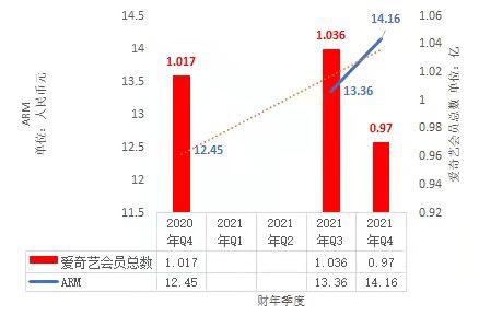 在财报中,爱奇艺首次公布了其月度平均单会员收入(ARM)数据,第四季度ARM为14.16元,同比增长14%,环比增长4%。