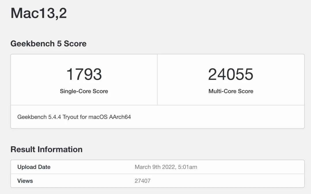 在 Mac Studio 对外公布之后,Geekbench 数据库中也出现了 M1 Ultra 的跑分,单核心 1793 的分数与 M1 Max 接近,但多核心性能直接来到 24055,与 AMD Ryzen 3960X 线程撕裂者差不多。