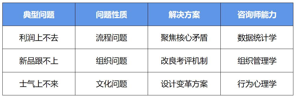 他发现第一次去客户公司做咨询,面对客户提出的痛点问题,他是一头雾水,不知从何下手。不是人家培训机构忽悠他,人家也介绍了几个咨询项目,实在是自己力不从心,于是跑来问我是不是该重回职场找个工作。