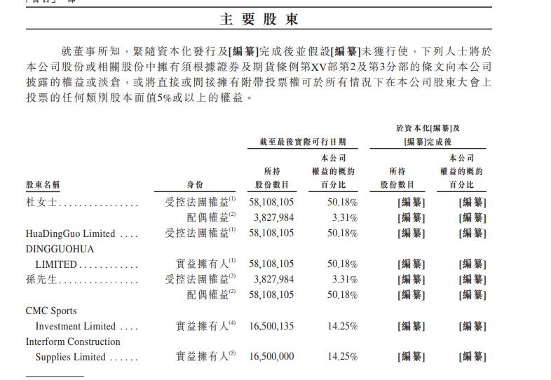 上市之前,公司创办人兼董事长杜华持股50.18%,阿里影业通过Interform Construction Supplies Limited持股14.25%,字节跳动旗下公司量子跃动通过Afflatus Limited持股4.74%,华人文化通过CMC Sports Investment Limited持股14.25%。