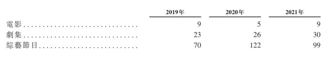 娱乐内容活动包括电影、剧集以及综艺节目,管理团队会为公司旗下艺人搭建可参演优质娱乐内容的机会。招股书显示,2021年,公司签订旗下艺人出演电影的合同9份;剧集合同30份;综艺节目合同99份。