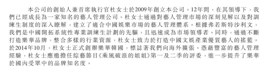 2009年,杜华创办乐华娱乐,并于2014年成立乐华韩国,开启海外扩张。此外,招股书还提到杜华曾担任综艺节目《乘风破浪的姐姐》第一季、第二季评委。