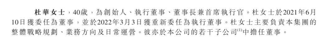公司创始人杜华担任执行董事、董事长兼首席执行官,主要负责整体战略规划、业务方向及日常运营。