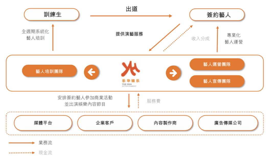 招股书提供了公司艺人管理业务中各方参与者的关系及角色图: