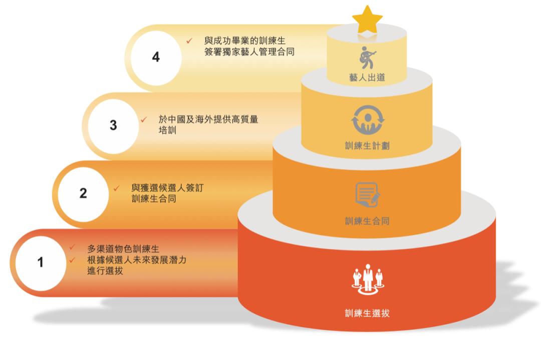 在艺人运营阶段,公司会通过旗下商务经纪以及执行经纪为签约艺人和艺人组合安排商业活动以及娱乐内容活动。