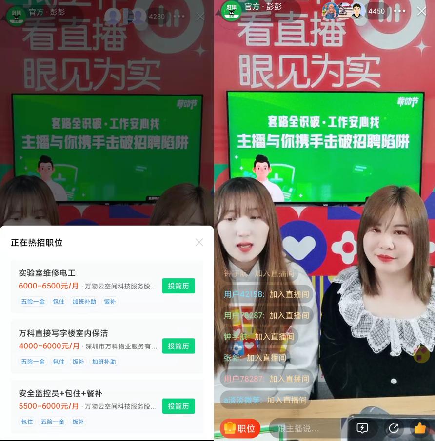 赶集直招的每个官方直播间,背景都有“看直播,找工作,眼见为实”的字样。