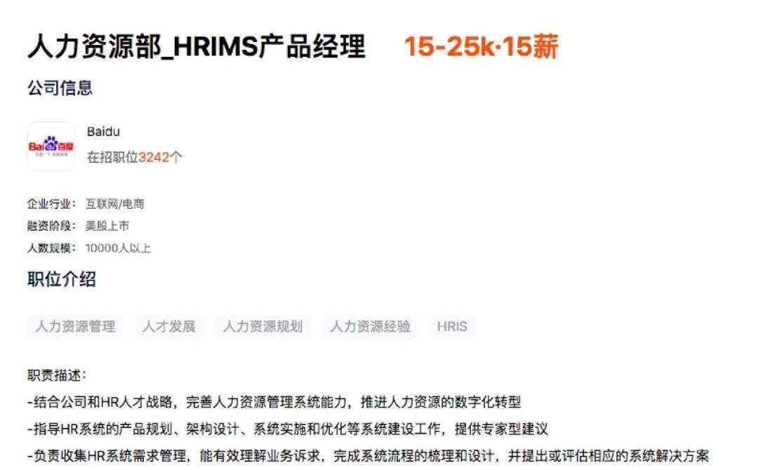 百度也设置了相关的岗位:
