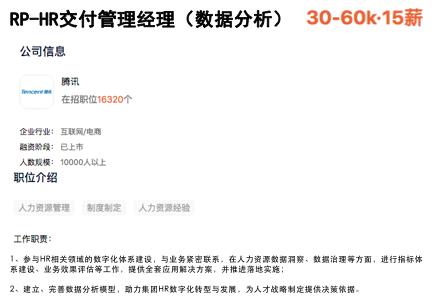 对于这种企业来说,往往会设置人力资源信息化(数字化)相关岗位。比如互联网头部企业腾讯: