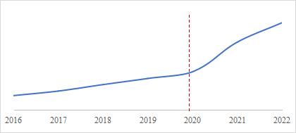 根据百度搜索指数的综合统计,自2016年起,数字化热度一直持续上升,2020年出现明显的拐点,以更快的速度上升。