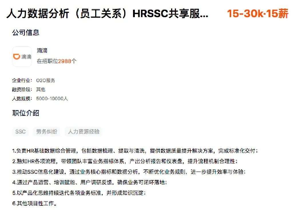 滴滴也同样在HRSCC中设置了这样的岗位: