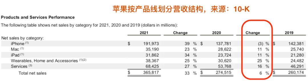 由于单价低,SE系列并没有给苹果整体营收带来太明显的提振作用。据图中年报,二代SE发布时的2020年,iPhone整体营收同比下降3%,当然这里面有疫情封店影响。同年营收增速最快的是“可穿戴设备、家居和配件”,这里包括耳机、手表、电视、智能音箱,以及各种配件。宅家让这部分产品销量大涨。所以,SE系列更主要目的是圈人,借助硬件把用户导向服务消费,毕竟对比看,2021年苹果硬件设备的整体毛利率为35.3%,服务的毛利率高达69.7%,包括广告、AppleCare保险、云、数字内容、支付等。