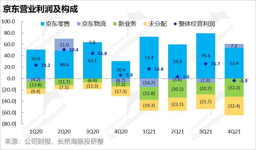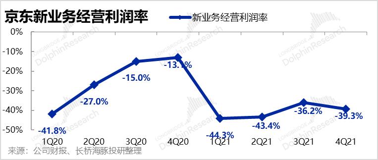 从分部盈利来看,本次京东盈利不及预期的原因除上述之外,新业务亏损扩大也是原因之一。
