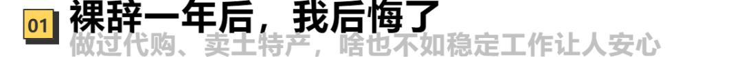 有的人在裸辞之后,尝试自主创业,先后做过代购、网店,最终却发现裸辞并不适合自己,“赚得比打工时还少”;