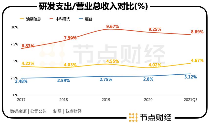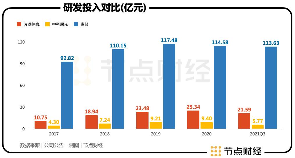 对比而言,惠普的研发投入比在2.5%-3%,中科曙光在9%左右。但考虑到几家企业的业务线配比区别和研发投入体量,浪潮信息的研发重视度尚可。