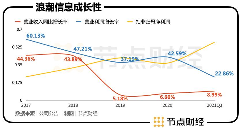 可以看到,浪潮信息的营收增长从2019年开始下降很明显,主要因为行业下行以及降价引起;2019年之后虽然略有缓慢回升,但同之前的高速增长是没法比了;营业利润增速总体下降也比较明显,但一个好的现象是扣非归母净利润在逐年提升的趋势中,2021Q3已达57.09%,说明浪潮信息对费用的管控>对成本的管控>对价格的管控,总体效果不错,2021Q3主要由于财务费用的减少。