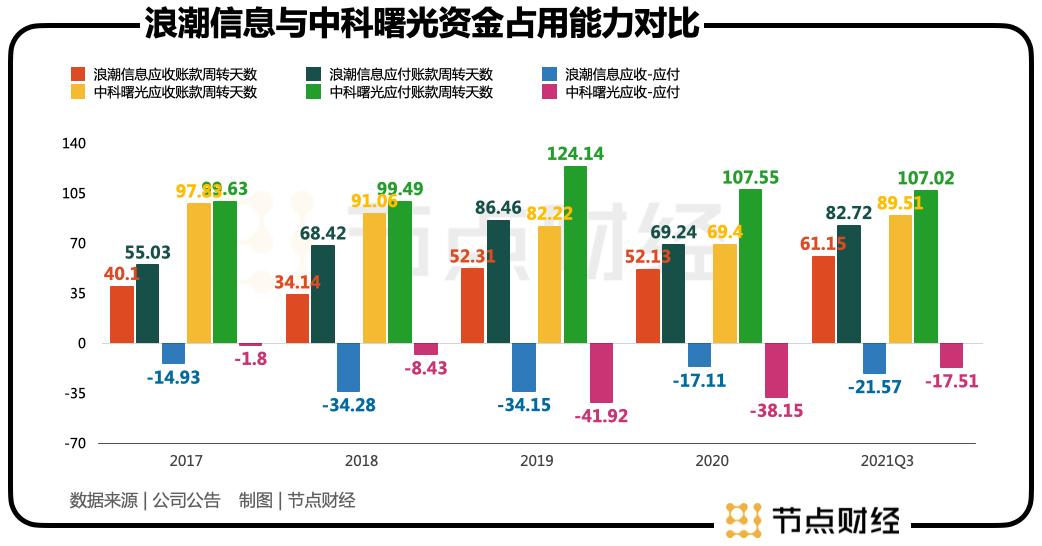 虽然毛利率低,但从资金占用能力上看,浪潮信息的上下游议价能力较为稳定,应收账款周转天收小于应付账款周转天数,具有资金占用能力。