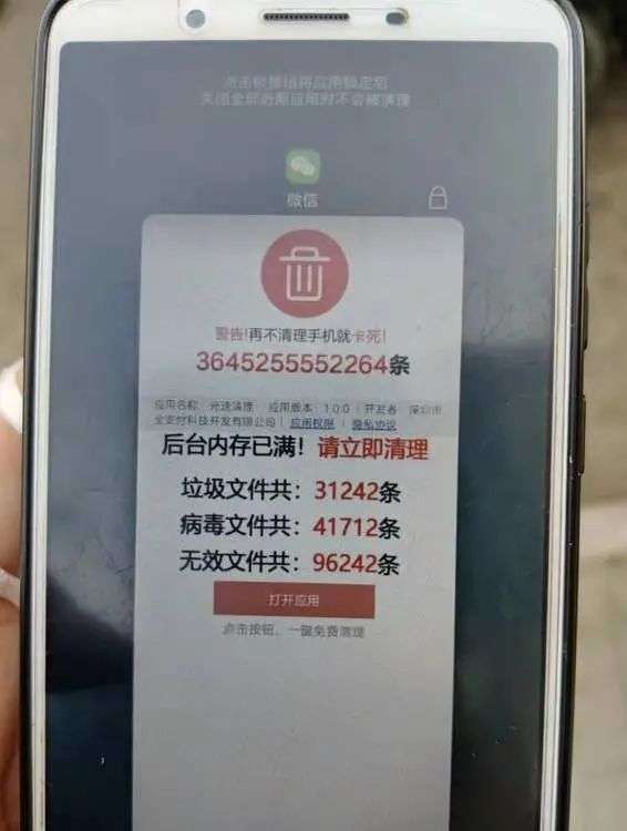 一位名叫“八私今天也要努力”(简称八私)的UP主过年回家时,父亲因为手机卡顿到无法使用,向他求助。他把清理的过程完全录屏。从打开手机的一瞬间,就有无数广告弹出,有Wi-Fi助理现金贷,还有美团、抖音的广告。“下载抖音极速版”的提示音不断发出,必须关闭声音才能消除。