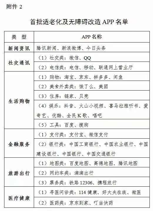 2020年底,工信部发布公告,称要从2021年1月起进行为期一年的 “互联网应用适老化及无障碍改造专项行动”,首批将优先推动8大类115家网站、6大类43个APP进行适老化及无障碍改造。其中就包括微信、滴滴、美团、抖音、快手等最为主流的应用。