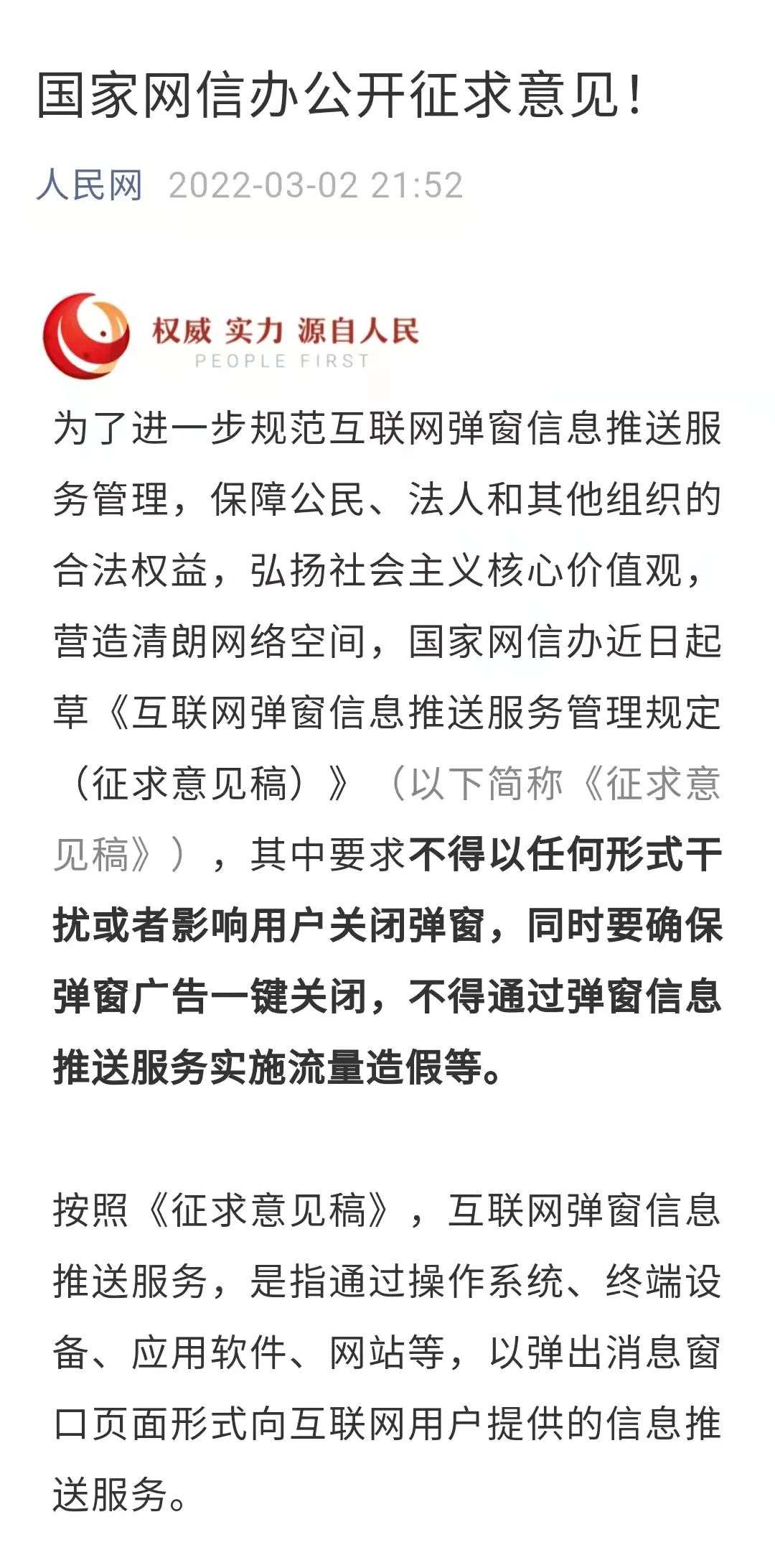 公众可将反馈意见通过电子邮件方式发送至:tcts@cac.gov.cn,意见反馈截止时间为2022年3月17日。