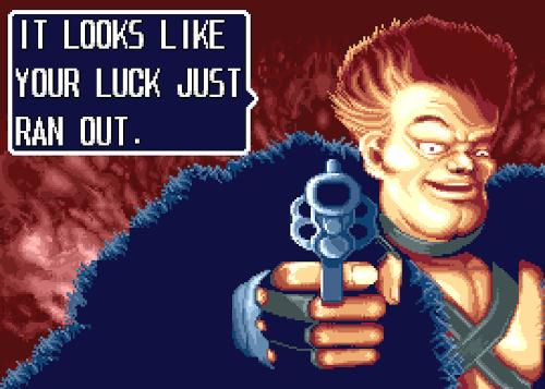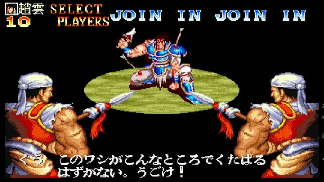 在CAPCOM版的《吞食天地II》里,败北的玩家会全身中箭衣衫褴褛地跪倒在小兵面前,道出自己的饮恨遗言。