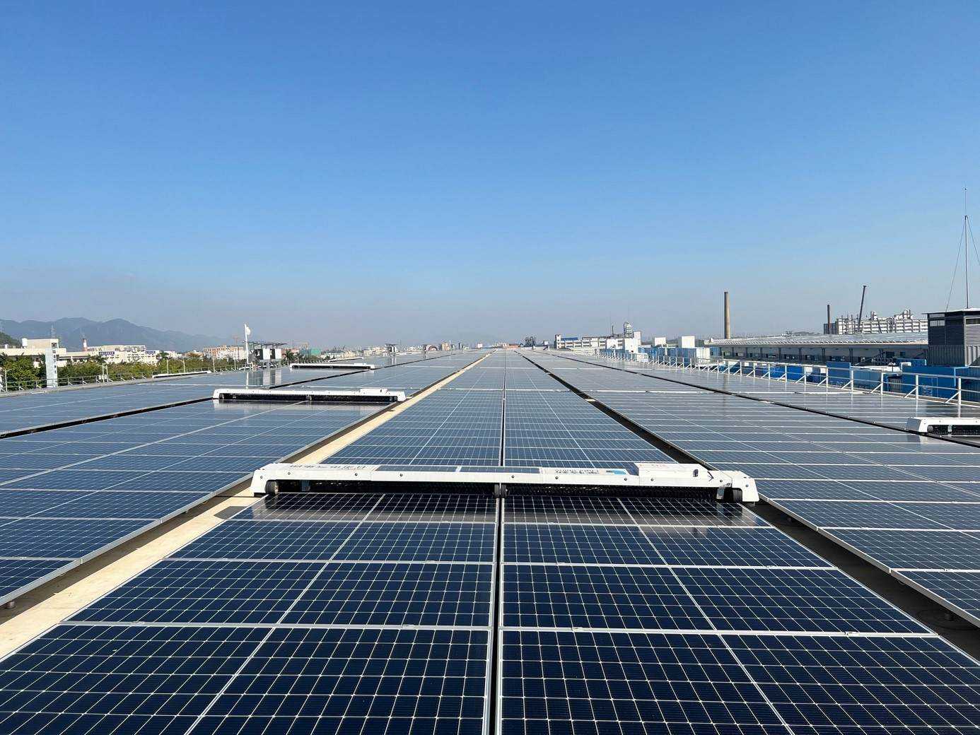 腾讯仪征数据中心采用分布式光伏,屋顶的光伏组件可以产生电力。