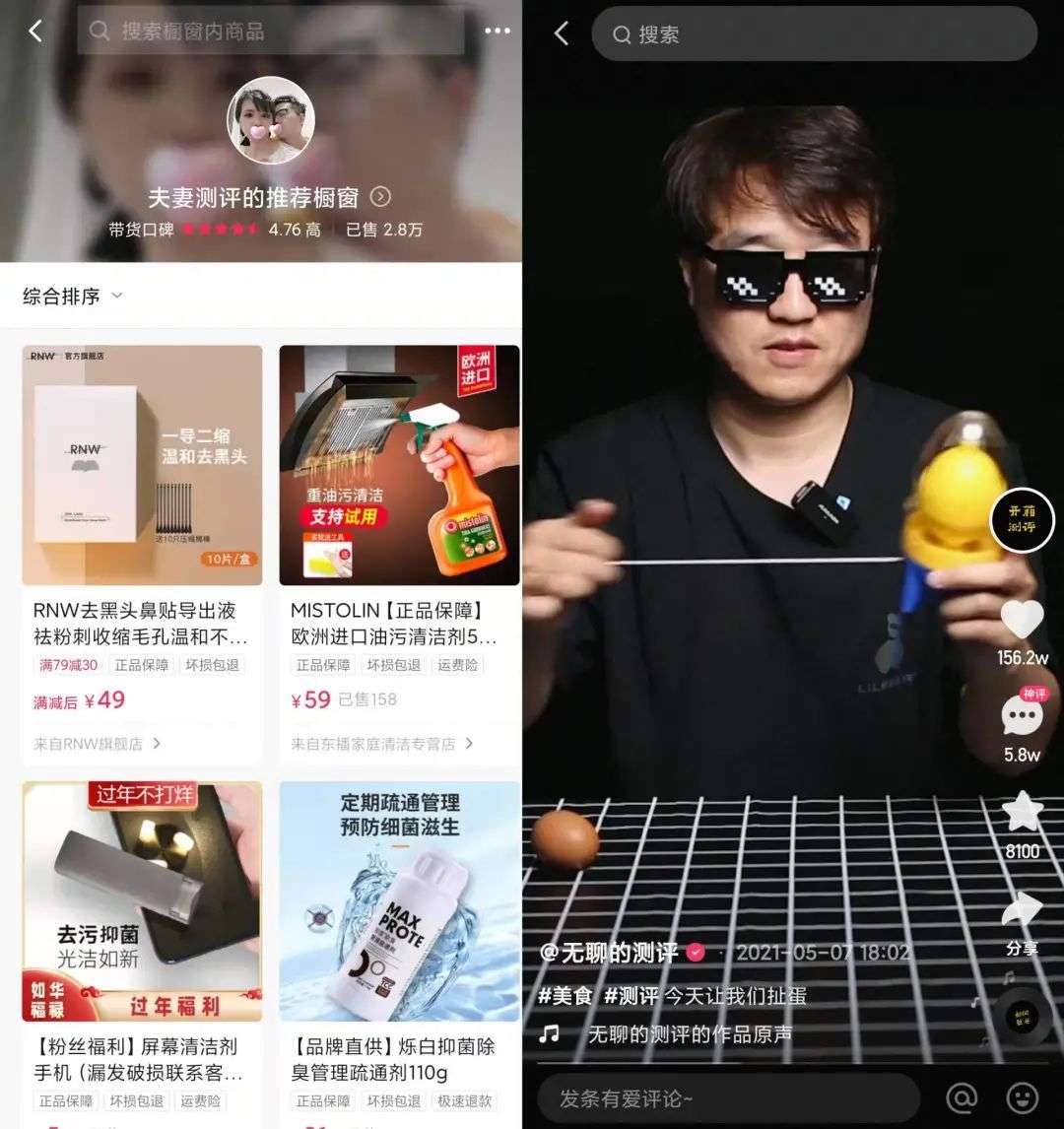 变现方面;抖音账号“夫妻测评”,粉丝17.8万,推荐橱窗售出2.8万件商品;快手账号“岩弟、【美食测评】”粉丝148万,快手小店累计带货29.9万件。