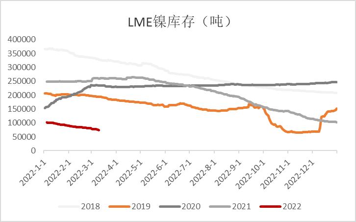 市场上现货方面,根据Wind数据,截至3月11日,伦敦金属交易所镍总库存为7.57万吨。另外,国储局也有大量的镍储备。