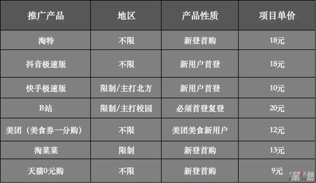 目前市面上主推的APP拉新奖励价格(注:深燃根据受访对象口述及拉新群信息整理,不同等级团队价格不完全一致,仅供参考)制图 / 深燃
