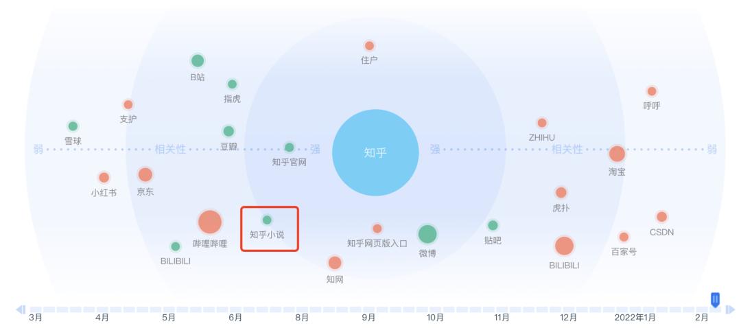 (知乎需求图谱。圆形大小代表搜索知乎的高低。来源:百度指数)