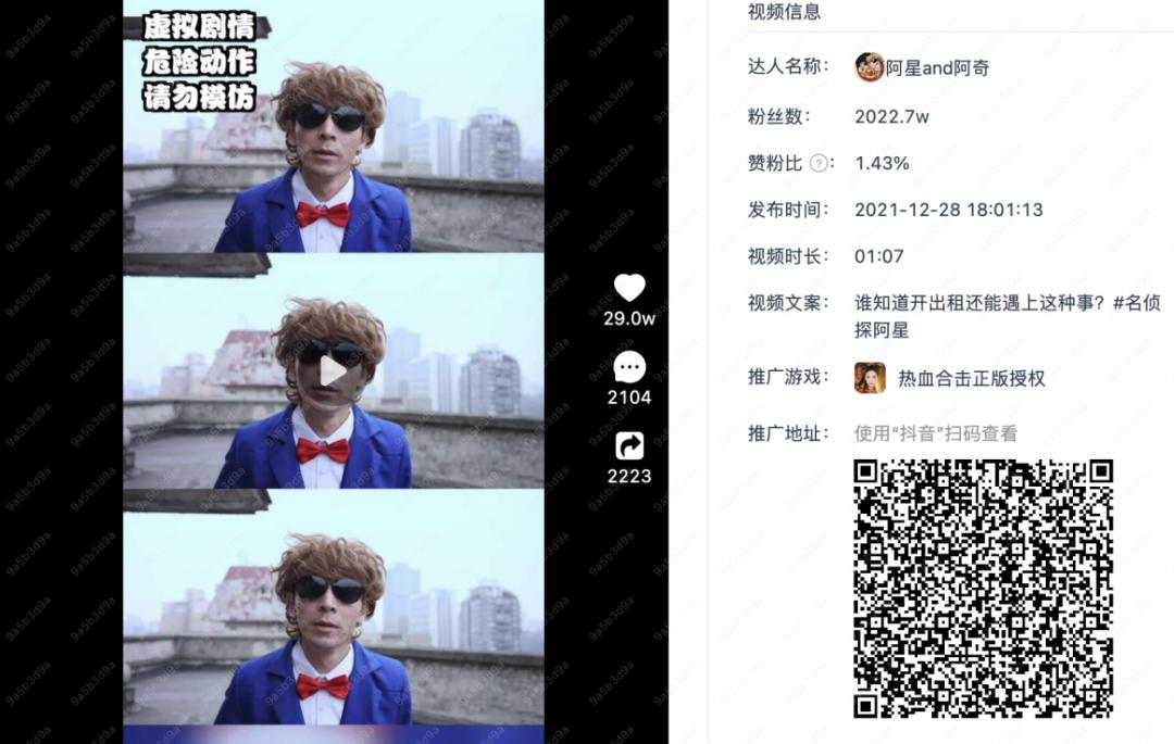 1、精准且具有影响力。达人视频营销其实就是与KOL进行商业合作,将产品精准推送至其粉丝群体中,KOL粉丝量越大,其传播力度也就越强。比如在《热血合击》与拥有2000万粉丝的‘阿星and阿奇’合作中,34万个点赞量只是次要收获,更重要的是将《热血合击》 通过‘阿星and阿奇’的影响力,达成一次千万量级的曝光 。