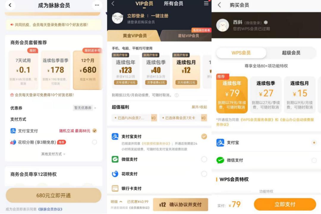7天会员免费,首月会员0.1元,腾讯视频、百度网盘、轻颜相机、脉脉、探探……从娱乐到工具APP,不分公司大小用户多少,有付费会员的地方,几乎就有自动续费的问题。其中,爱奇艺、脉脉、轻颜相机、WPS等诸多软件,在告诉用户自动续费这件事上,还是以小灰字等手段遮遮掩掩。