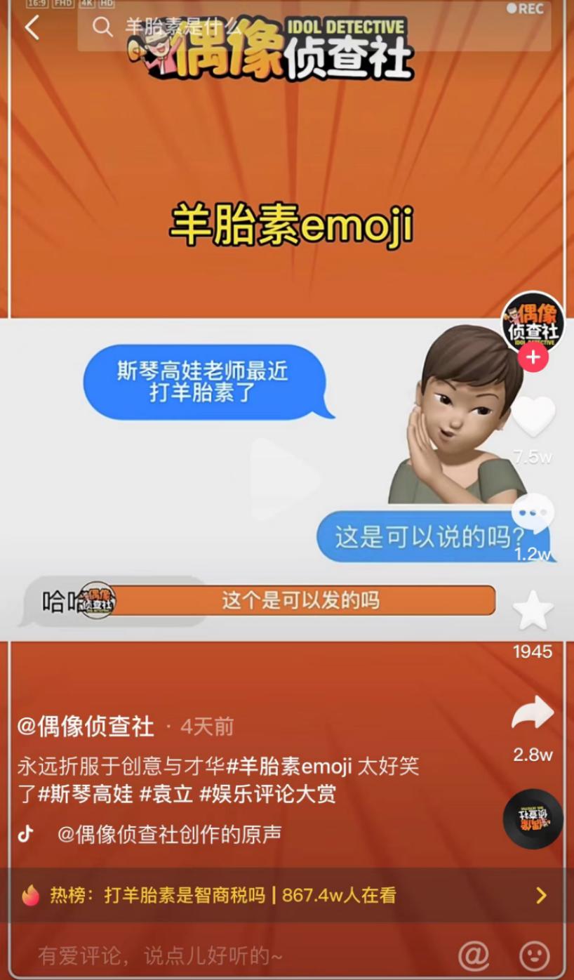 除开偶然因素外,羊胎素梗的一次次翻新,也与传播媒介及受众群体的变化有关。短视频的兴起催生了一批新的用户与受众,诞生了新的需求,也让更多玩梗的方式被呈现了出来。