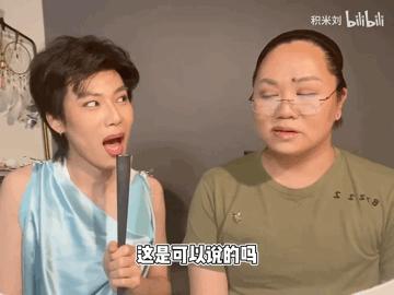 在这期视频中,积米刘和矮娇虎两位男性分别对斯琴高娃和袁立采访时的妆容与神态进行了模仿,男扮女装的反差感、对斯琴高娃各种微表情的堪称神级的还原,产生了强烈的喜剧效果。