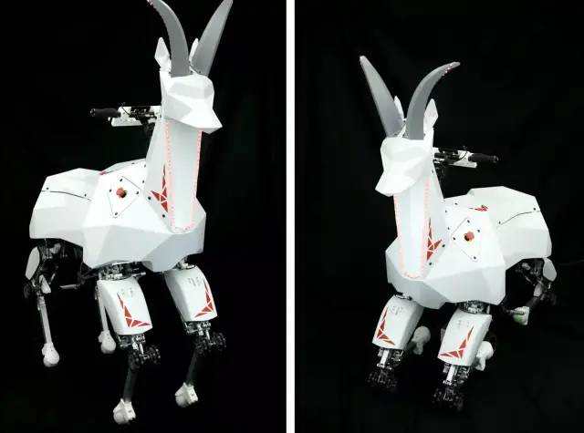 不过钢铁羱羊的造型不是为了卖萌,是为了结合两足机器人腿部构造的灵活性、与四足机器人轮式构造的速度与稳定性。