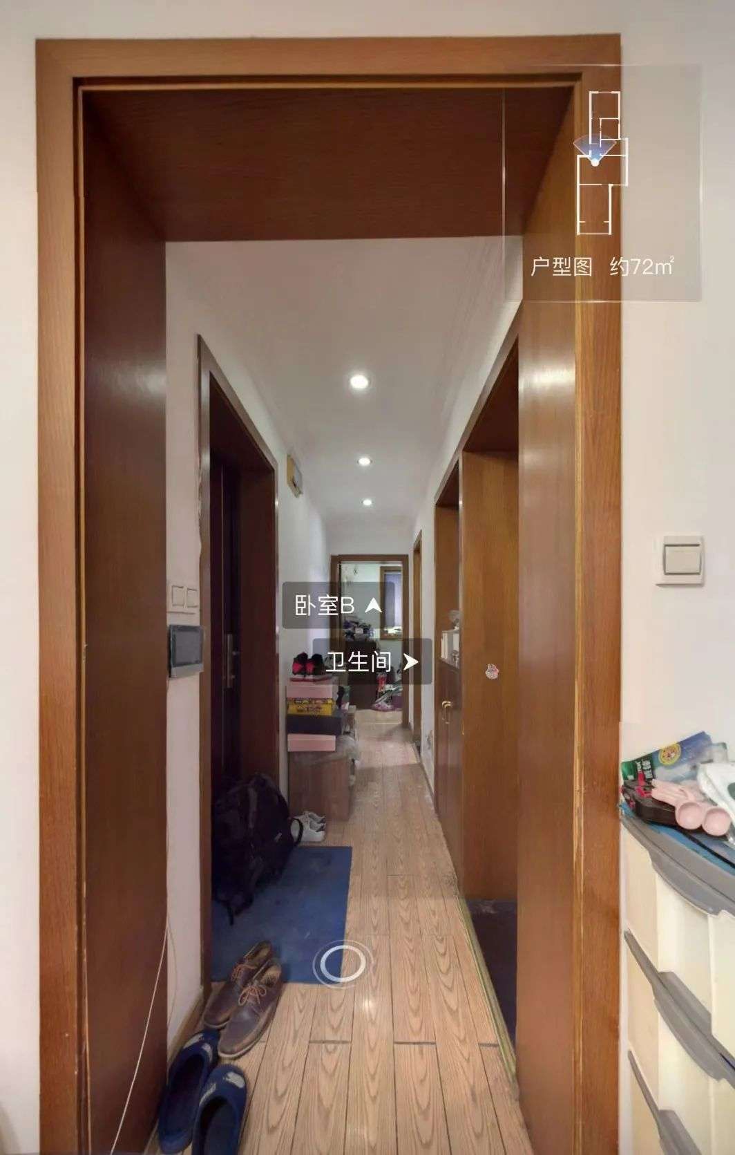过道太长还有一个问题就是,这部分过道面积不好用。实拍图中也能看到,几乎只能放个鞋架以及一点杂物。往往没办法安置实用的家具,空间利用率极低。