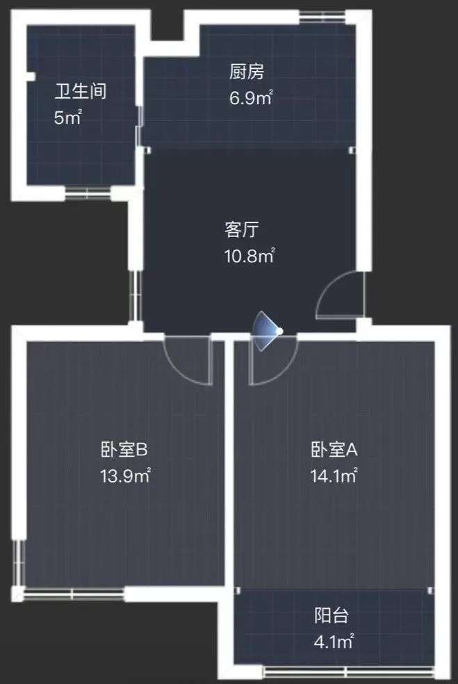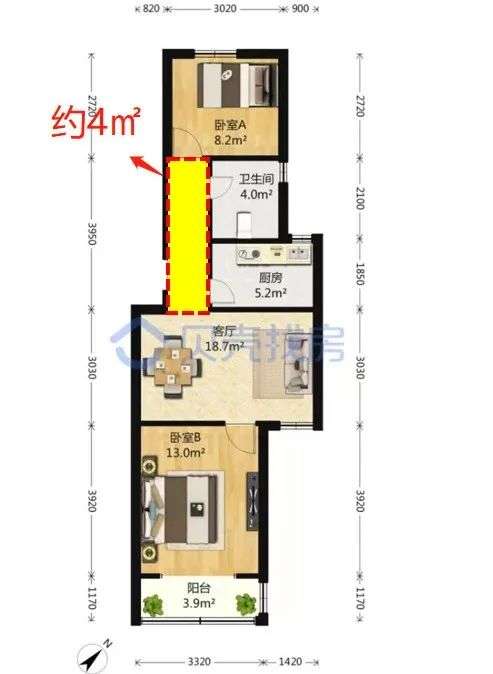 这样的面积分配,类似于传统的“飞机”户型,只是简单地做了两个差不多大小的卧室。