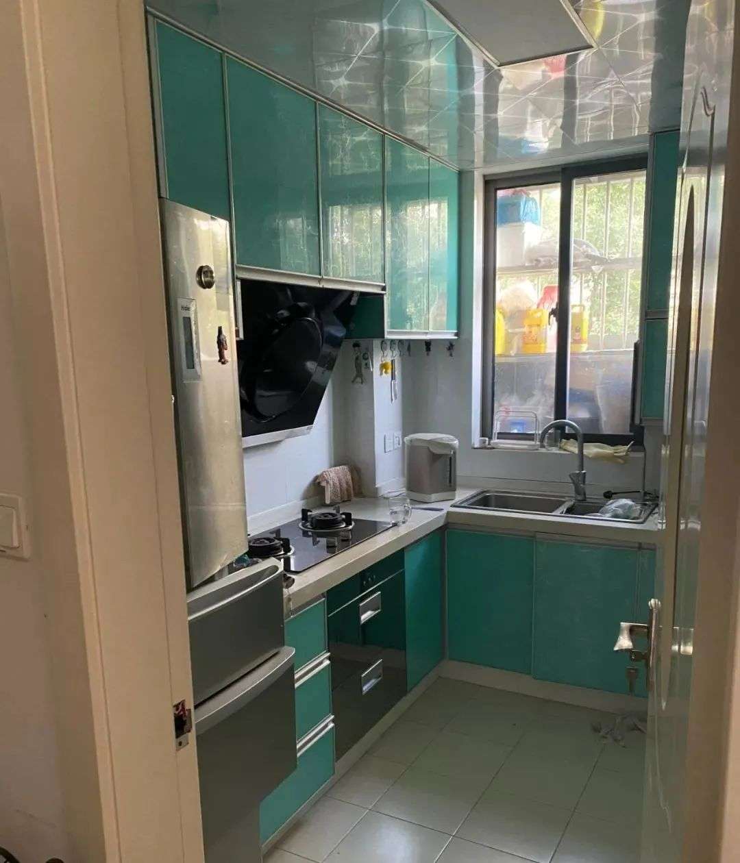 大致目测一下应该只有4平米,除了塞下一个极窄的单开冰箱,再也放不下其他东西。想添置个大的厨房电器都不太可能。