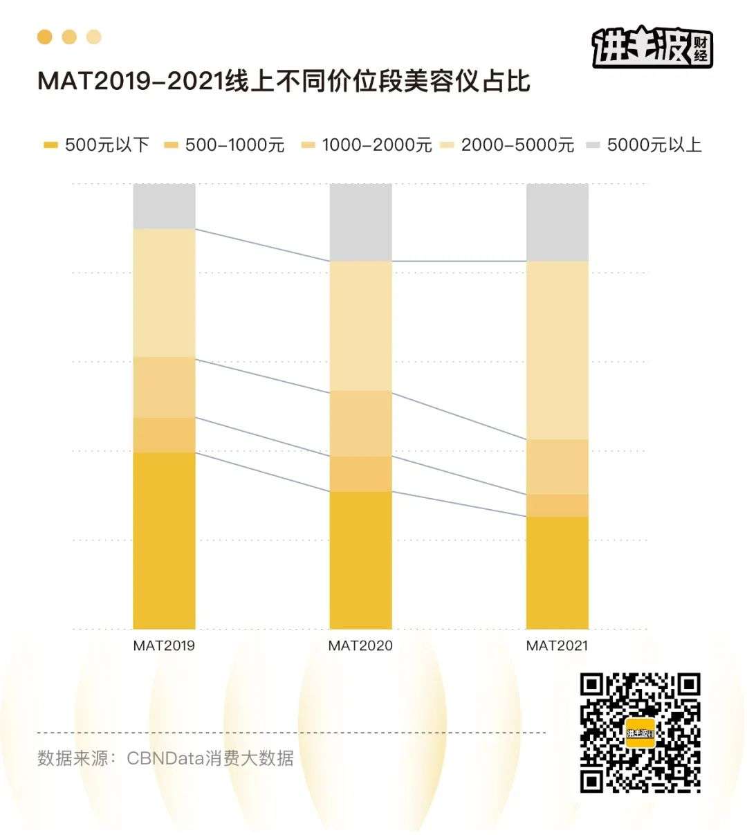 从商品单价来看,2021年,2000元以上的高端美容仪消费占比超过50%,单价3000以上的抗老美容仪也呈在爆发式增长。