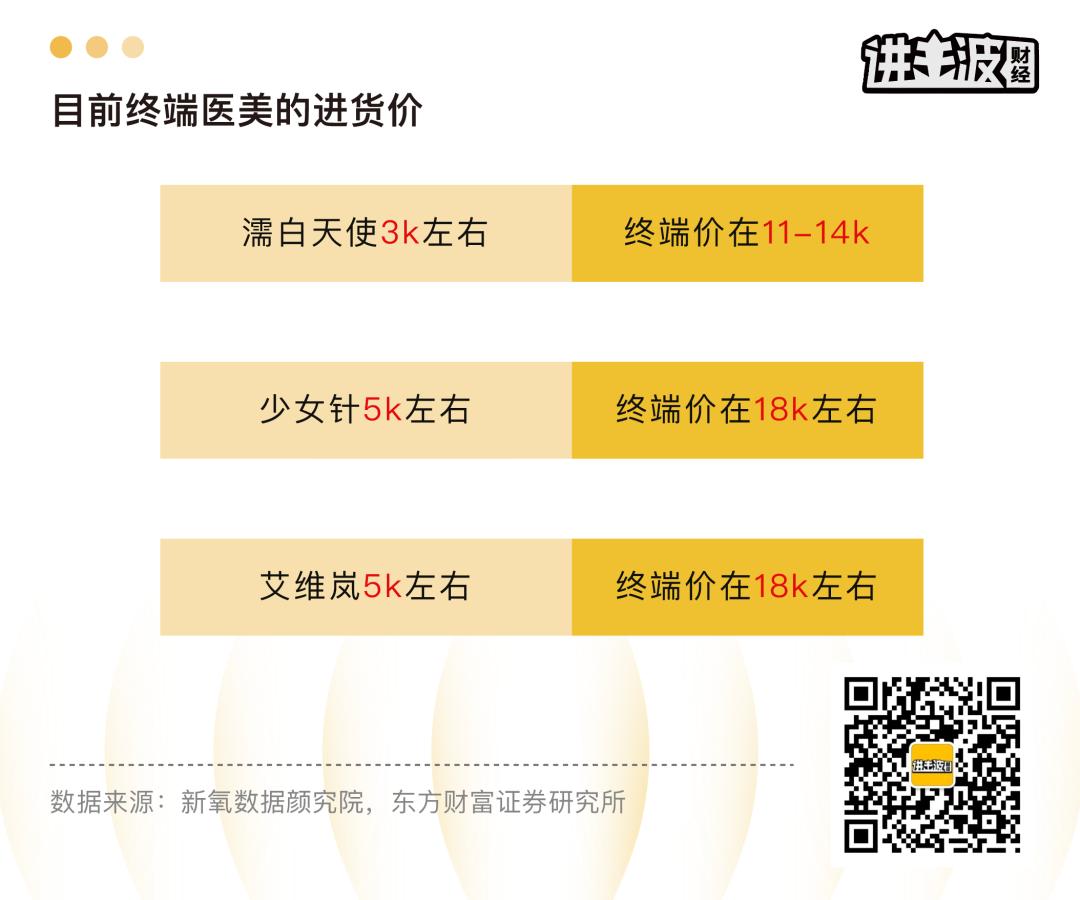 例如,爱美客的嗨体&熊猫针&濡白天使、华熙生物的润百颜&双子针、华东医药的少女针等,靠着「爆款产品」打响了行业知名度,随着合规医美产品的丰富化供应,品牌认知和体量规模会将正向发展。
