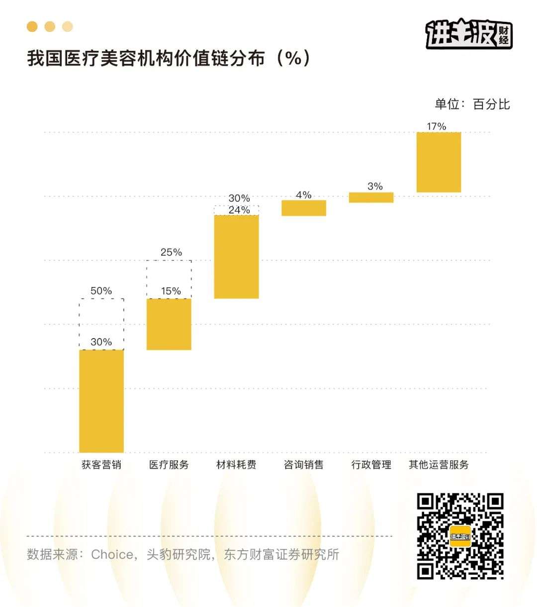 就医美机构而言:多而不大,集中度不高;市场教育主要通过平台媒体完成,导致机构的营销费用极高。