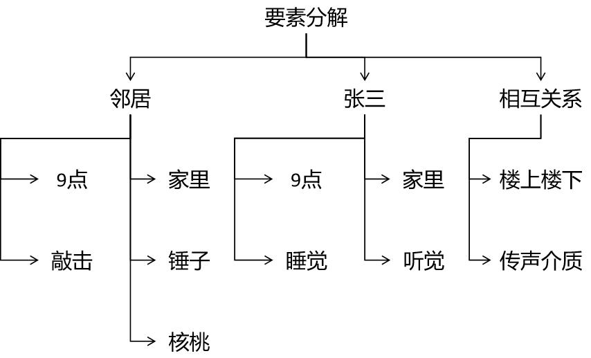 比如在张三邻居晚上敲核桃这个故事中,包含的要素有:张三、邻居、地点关系(楼上楼下)、时间(9点左右)、动作(敲)、工具(小锤子)、对象(核桃)、传声介质等,任何一个要素改变,这个问题都将得到解决,而不是针对“邻居”这一个要素,罗列自己可以采取什么样的策略。