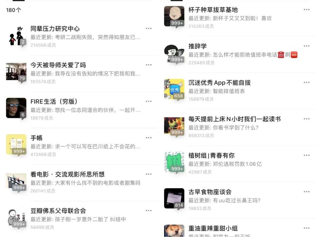 从家具装修到旅游攻略,亦或者是一些小众爱好,阿桃关注了近200个小组,话题五花八门,但甭管多冷门,都能找到兴趣相投的人。