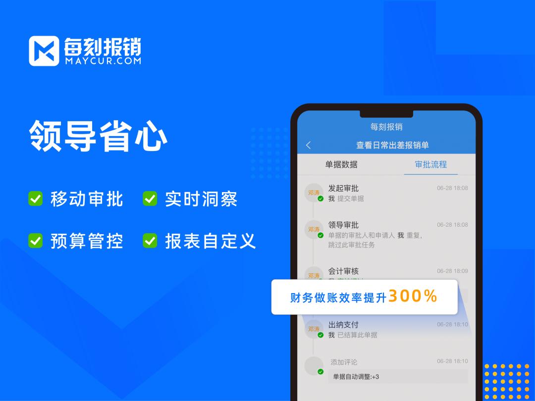 每刻报销是一款专注于企业智能费用管理的SaaS软件,致力于为企业提供差旅预订、费用报销管理、全流程费用管控服务,降低企业费用采购成本, 提高费用采购和审批审核的效率;提升员工报销体验,方便财务预算费控,促进企业报销数字化管理,让企业不再为报销而烦恼。