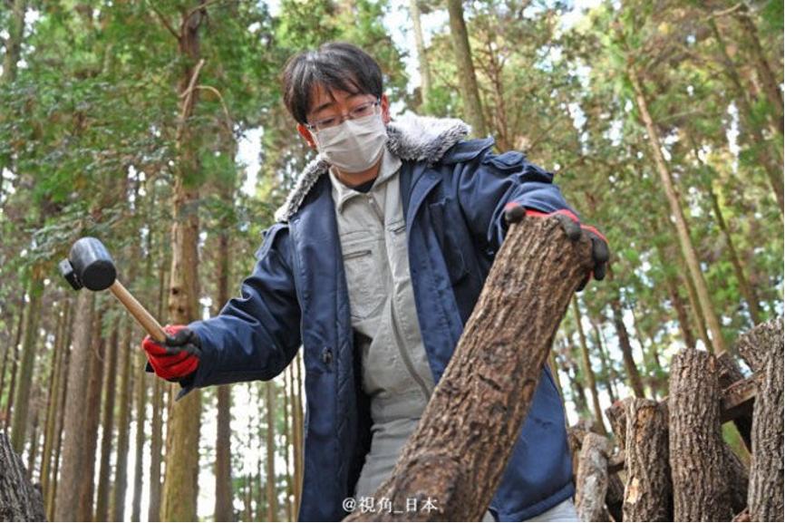 日本菇农正在锤木头 | 视角日本