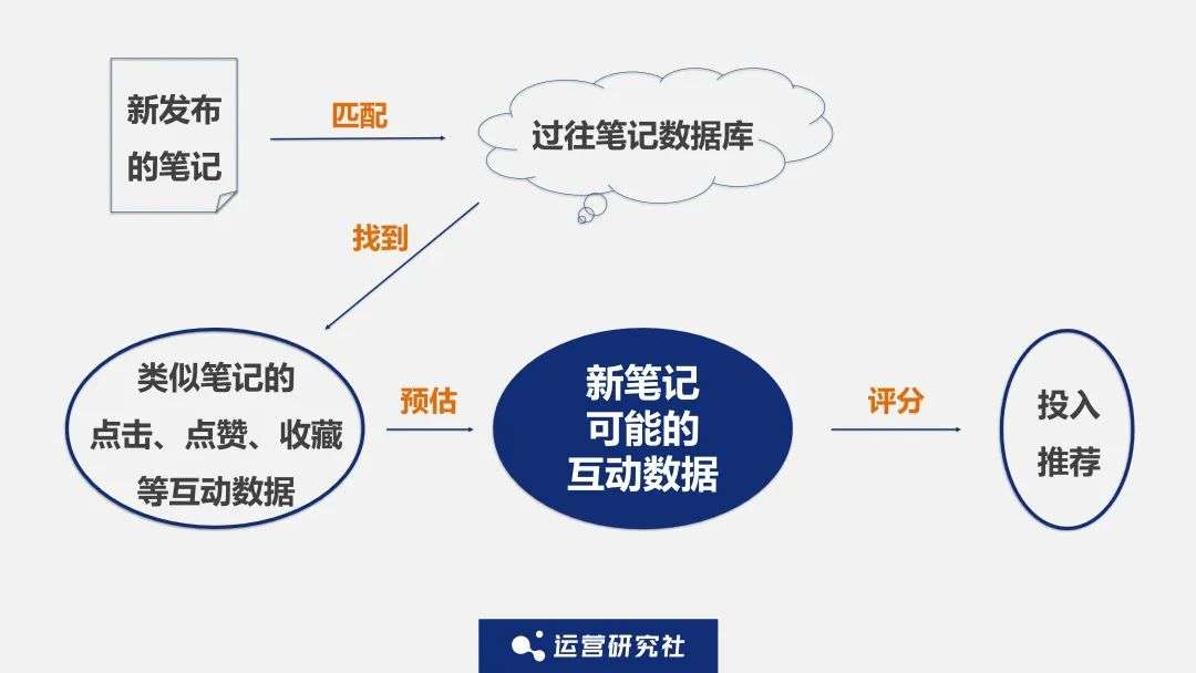第二步,系统会根据类似笔记获得的点击、点赞、收藏等互动数据,预测该笔记在发布后,可能接收到用户互动行为的概率为多少,从而来为该笔记“打分”。