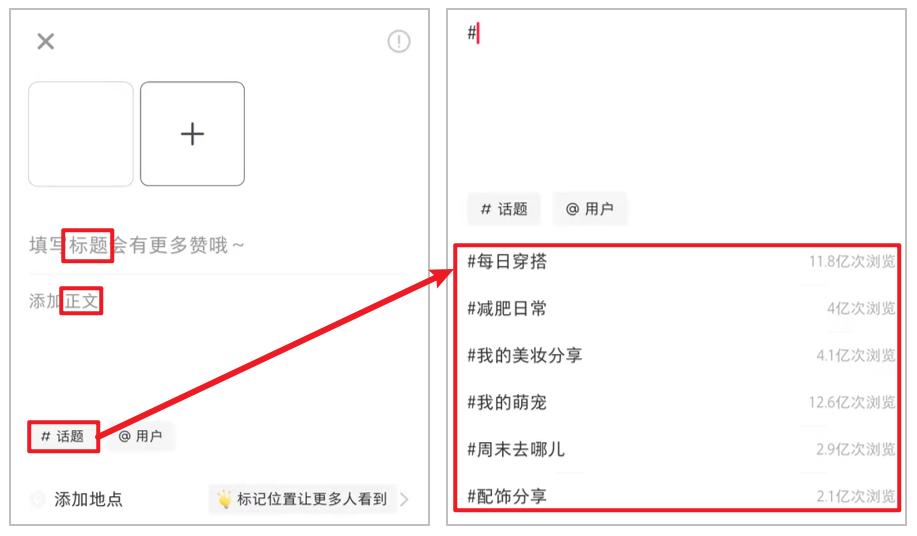 在笔记的标题、内容和话题中,都可以布局关键词。