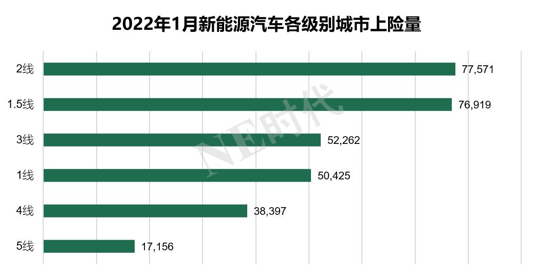 另一方面,下沉市场的车型选择越来越多,接受度越来越高,据数据显示,2022年1月的新能源汽车上险量中,一线城市排在了第四位,三线城市甚至比一线城市的上险量更高,四、五线城市也在逐步逼近一线城市的上险量。