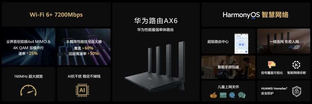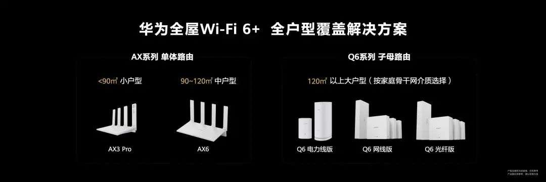 为了满足不同家庭的网络需求,华为这次推出了两套上网组合方案:针对小户型的华为路由 AX6 和针对大户型的华为路由 Q6。